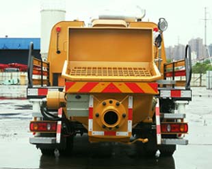 该车为特种作业类车辆,用于混凝土输送,主要固定装置为混凝土输送泵等。该车仅用9.00R20 14PR或9.00R20 16PR轮胎,选用轴距为4700mm。侧防护栏的材质为SPCC型钢,连接方式为螺栓连接;后部为混凝土料斗工作装置,料斗最下端离地高度为495mm,起后下部防护作用。装有ABS,ABS型号:3631010-C2000,4460046440;生产厂家:东科克诺尔商用车制动系统(十堰)有限公司,威伯科汽车控制系统(中国)有限公司。车辆顶部选装进气、排气系统装置,不加装和加装后对应的整车高度分别为2760mm和3040mm。随底盘选装驾驶室外观照片。选装一种支腿。选装新涂装、料斗、覆盖件。 |