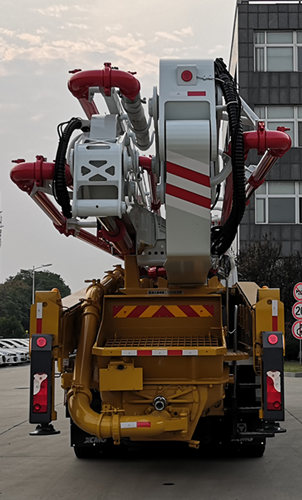 该车为N3类专用作业车,用于混凝土泵送.车长14520mm时,后伸为1870mm.车长为15370mm时,后伸为2720mm.侧防护装置为金属护栏,铝合金材质,截面高度为120mm,侧防护为螺栓连接, 后防护位置为专用作业装置(混凝土料斗)替代,离地高度为450mm。ABS系统控制器生产企业/型号为威伯科汽车控制系统(中国)有限公司/44600XXXX0。选装支腿油缸形式,选装输送管布置形式,选装料斗分配阀型式。 |