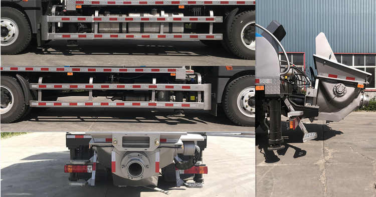 该车为专用作业车辆,用于泵送混凝土,主要固定装置为混凝土输送泵.该车侧面防护装置所用材料材质为Q235A,连接方式为与车架螺栓连接;后防护装置为车身专用装置代替,离地高度为420mm.长/前悬/后悬对应关系为(单位:mm):9015/1332/2783,9195/1332/2963,9375/1332/3143.ABS生产厂家/型号:上海万捷汽车控制系统有限公司/VIE ABS-II.随底盘选装限速器,限速89km/h.车辆顶部选装进气、排气系统装置,加装和不加装对应的整车高度分别为3015,3075mm和2890mm.随底盘选装新款驾驶室. |