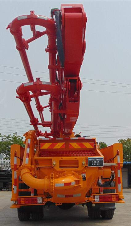 该车为专用作业车辆,用于混凝土输送,主要固定装置为混凝土输送泵,臂架等,后伸因选装不同长度的臂架而变化,车长/后伸(mm)对应关系:9675/25,9875/225,10600/950,10800/1150.侧防护装置的材质为Q235-A,连接方式为与车架螺栓连接;后防护装置为车身专用装置代替,离地高度为480mm.随底盘选装驾驶室,臂架输送管,尾部弯管根据需要可以左右选装,后支腿可选装左右固定伸缩式和向外摆式.ABS系统型号为VIE ABS-II,生产企业为上海万捷汽车控制系统有限公司.安装具有卫星定位功能的行驶记录仪,型号为 DRT3110(BD),生产企业为启明信息技术股份有限公司. |