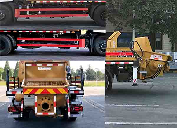 该车为特种作业类车辆,用于混凝土输送,主要固定装置为混凝土输送泵等。该车仅用轴距为4700mm。侧防护栏的材质为SPCC型钢,连接方式为螺栓连接;后部为混凝土料斗工作装置,料斗最下端离地高度为500mm,起后下部防护作用。装有ABS,ABS型号:3631010-C2000,4460046440;生产厂家:东科克诺尔商用车制动系统(十堰)有限公司,威伯科汽车控制系统(中国)有限公司。车辆顶部选装进气、排气系统装置,不加装和加装后对应的整车高度分别为2760mm和3040mm。选装新涂装、覆盖件及装饰板。 |