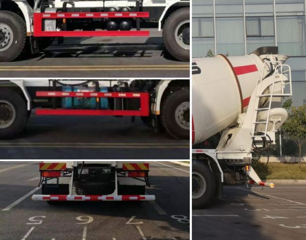 搅动容量为4.43立方米。选装上装接料斗。侧面防护横梁材质为板材1.0SPCC,纵梁材质为Q235B;后下部防护材质为Q235B的钢管,断面尺寸为120?20mm,离地高度为480mm,连接板材质为Q235B;侧面及后下部防护装置均为螺栓连接。罐体总长3740mm,最大宽处直径2000mm,罐体安装角度为16啊=鲅≡竦着讨?975mm+1400mm轴距。随底盘选装WP10.310E53,WP10.290E53,WP10.336E53发动机,对应的油耗申报值(L/100km)依次为36.4,36.0,36.8。安装具有卫星定位功能的行驶记录仪。随底盘选装ABS,ABS系统生产厂家:西安正昌电子有限责任公司,广州市科密汽车制动技术开发有限公司,浙江万安科技股份有限公司.ABS系统对应型号:ZQFB-V,CM4XL-4S/4K,VIE ABS-Ⅱ。 |