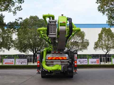 该车型专用功能为泵送混凝土,专用装置为混凝土泵送单元、转台、臂架、输送管、支腿;发动机最大净功率:300kW;第一二轴轮胎为385/65R22.5;第三四轴轮胎为315/80R22.5;车长13715mm对应后伸1175mm;车长13915mm对应后伸1375mm;车长13925mm对应后伸1385mm;车长14250mm对应后伸1710mm;该车可选装前下部防护装置、转台、臂架、输送管、支腿;该车侧面防护装置所用材料材质为铝合金,通过螺栓与支架连接,支架与底盘大梁通过螺栓连接;后部专用装置具有后下部防护功能,离地高度490mm;ABS型号为ESP8.1,ABS生产厂为BOSCH. |