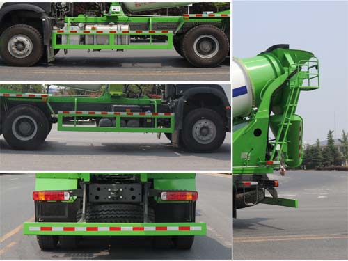 搅动容量为4.0立方米;罐体外形尺寸:罐体总长(含封头)5712mm,最大外径1428mm,罐体安装角度15?选装接料斗,选装不同爬梯样式,不同后座样式;侧防护材料Q235,螺栓连接;后防护材料Q235,螺栓连接,后防护截面高度尺寸160mm,截面宽度尺寸50mm,下边缘离地高度500mm; 车辆长/轴距/前悬/后悬对应关系为: 9630/4025+1350/1500/2755,9630/4000+1400/1500/2730,9850/4025+1350/1500/2975, 9850/4000+1400/1500/2950,10350/4325+1350/1500/3175,10350/4300+1400/1500/3150;ABS系统型号为4460046300, ABS-E 4S/4M,生产企业为威伯科汽车控制系统(中国)有限公司;仅选D10.34-50,D10.38-50这两个发动机,发动机D10.34-50对应油耗申报值32.3L/100km,发动机D10.38-50对应油耗申报值32.3L/100km;安装具有卫星定位功能的行驶记录仪;该车是用来运送建筑用预拌混凝土的罐式专用运输车辆,主要专用装置为搅拌筒、减速机和清洗系统等, 通过液压油泵、马达、减速机等驱动筒体转动,以保证所运载的混凝土不会凝固. |