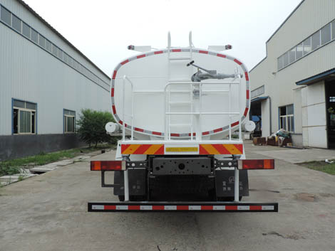 | 运输介质/密度(千克/立方米):水/1000;罐体有效容积:14.6立方米,罐体外形尺寸(长卓碜高)(mm):6250x2300x1520;整车长度/轴距/前悬/后悬(mm) /离去角(?对应关系:9400/4350+1350/1320/2380/13,9400/4550+1350/1320/2180/13,9850/4350+1350/1320/2830/11,9850/4550+1350/1320/2630/11;罐体两侧选装方管箱; 选装其他形式的挡泥罩总成;后部平台选装雾炮;侧、后防护装置材料材质为Q235B,侧、后防护装置与大梁用螺栓联接,后防护断面尺寸(宽赘?:50?20(mm),离地高度为510mm;随底盘装备ABS,ABS系统生产厂家:威伯科汽车控制系统(中国)有限公司,型号:4460046300;该车安装具有卫星定位功能的行驶记录仪。 |