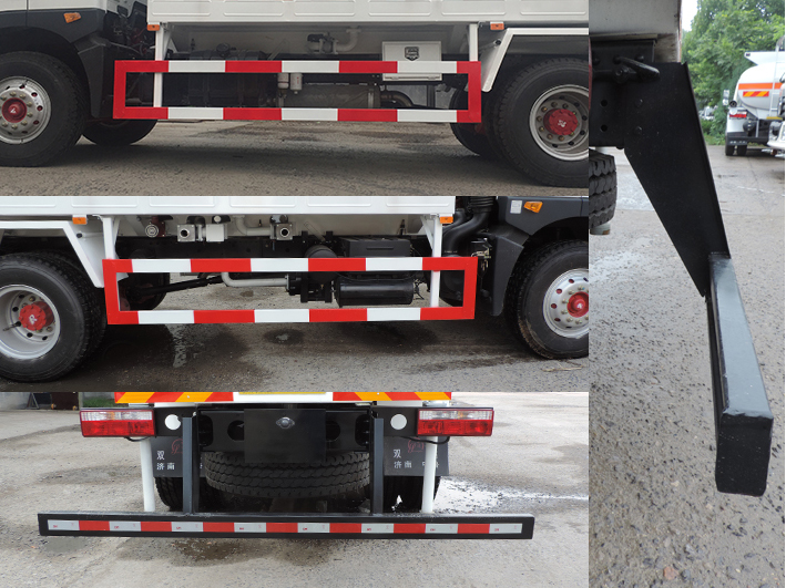 运输介质/密度(千克/立方米):水/1000;罐体有效容积:11.2立方米,罐体外形尺寸(长卓碜高)(mm):5000x2250x1480;仅采用轴距为4500mm的底盘,整车长度(mm)/后悬(mm)/离去角(?对应关系:8050/2320/12,8500/2770/11; 整备质量(kg)/驾驶室准乘人数(个)对应关系:7100/3,7165/2;后部平台选装雾炮;前部选装三弯喷枪;侧、后防护装置材料材质为Q235B,侧、后防护装置与大梁用螺栓联接,后防护断面尺寸(宽赘?:60?20(mm),离地高度为530mm;随底盘装备ABS,ABS系统生产厂家:焦作博瑞克控制技术有限公司,型号: J ABS;该车安装具有卫星定位功能的行驶记录仪。