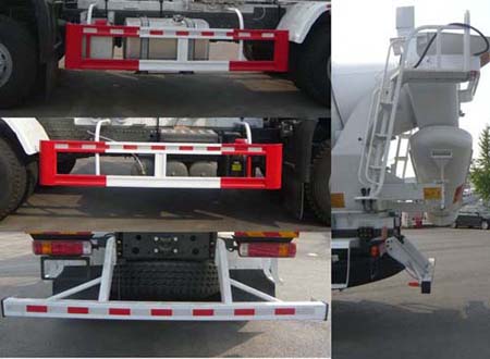 罐体搅动容量4立方米.罐体总长4750mm,最大直径1650mm.侧后防材料材质:Q235.侧防护支撑座与副车架焊接,侧防护与支撑座螺栓连接,后防护与车架螺栓联接,后防护装断面尺寸: 120mm?0mm,后防护离地高度:480mm.安装具有卫星定位功能的行驶记录仪.ABS系统型号为4460046300,生产企业为威伯科汽车控制系统(中国)有限公司.发动机D10.34-50油耗申报值35.1L/100km,发动机D10.38-50油耗申报值35.5L/100km.发动机D10.28-50油耗申报值35.1L/100km,发动机D10.31-50油耗申报值35.1L/100km.相邻车轴轮胎间距不小于250mm时后两轴车轮后面均安装雨帘. |