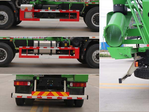 搅动容量为4.11立方米;罐体外形尺寸:长5740mm,最大外径1530mm;随底盘选装驾驶室;选装不同爬梯样式,选装不同后座样式,选装不同轮罩样式;侧防护采用冷弯型钢/Q235,螺栓连接;后防护采用冷弯型钢/Q235,螺栓连接,后防护截面高度尺寸120mm,截面宽度尺寸50mm,下边缘离地高度500mm; ABS系统型号/生产企业:ABS/ASR-24V-4S/4M/东科克诺尔商用车制动系统(十堰)有限公司.安装具有卫星定位功能的行驶记录仪;发动机WP12.375E50对应油耗申报值为37.43L/100km;该车是用来运送建筑用预拌混凝土的罐式专用运输车辆,主要专用装置为搅拌筒、减速机和清洗系统等,通过液压油泵、马达、减速机等驱动筒体转动,以保证所运载的混凝土不会凝固. |