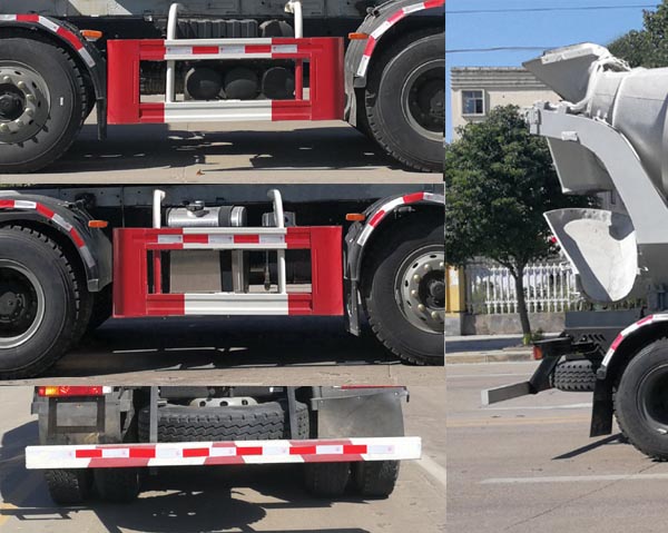 | 随底盘选装驾驶室,选装后部两侧爬梯结构;仅选用1800+3000+1400(mm)轴距;搅动容量为7.03立方米;罐体外形尺寸(mm):5460(总长)字本?354(前锥)字本?000(中筒)字本?130(后锥);整车长/前悬/后悬对应关系(mm):9520/1485/1835,9520/1525/1795,10200/1485/2515,10200/1525/2475,10500/1485/2815,10500/1525/2775;仅选用钢板弹簧悬架;安装具有卫星定位功能的行驶记录仪;ABS系统生产厂家及型号为:广州市科密汽车制动技术开发有限公司CM6XL-6S/6K(6S/6M),广州市科密汽车制动技术开发有限公司(型号:CM4XL-4S/4K(4S/4M),西安正昌电子有限责任公司(型号:ZQFB-V),浙江万安科技股份有限公司(型号:VIE ABS-Ⅱ);发动机和油耗值对应关系(L/100km):WP7.340E53/40.41,WP10.336E55/41.29,WP10.336E53/40.44;侧防护采用冷弯型钢/Q235-B,螺栓连接;后防护采用冷弯型钢/Q235-B,螺栓连接,后防护截面高度尺寸120mm,截面宽度尺寸50mm,下边缘离地高度480mm;主要装置为搅拌罐,用于混凝土运输. |