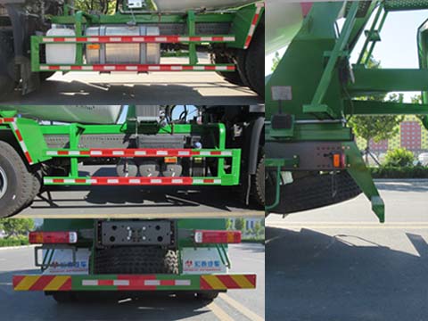 | 罐体搅动容量为:4.83立方米;罐体外形尺寸(mm):5172(总长) 爪?800(最大直径);侧防护材质为Q235,和车辆螺栓连接,后防护材质为Q345B,和车辆螺栓连接,截面为150?00(mm),离地高度为450mm;整车长(mm)/轴距(mm)/后悬(mm)的对应关系:10450/4325+1350/3275;9980/4025+1350/3105;该车采用D10.38-50、D10.34-50发动机,对应的油耗值分别为35.5L/100km、35.1L/100km;安装具有卫星定位功能的行驶记录仪;ABS系统型号为4460046300,生产企业为威伯科汽车控制系统(中国)有限公司;选装后尾灯带灯罩样式、选装挡泥板样式、选装挡泥板上无工具箱样式. |