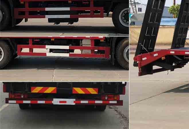 该车仅用于运送不可拆解物体。防护材料:Q235,连接方式:侧防护与平板纵梁采用焊接连接,后防护连接方式:螺栓连接;后防护断面尺寸/离地高:50?20/470(mm).外形尺寸长,前悬,轴距,后悬为一一对应关系。选装后部爬梯样式.随底盘选装驾驶室前脸局部造型变化,选装遮阳板,选装排气管样式;仅选用轴距4350+1350,4750+1350,该车安装带有卫星定位功能的行驶记录仪。ABS生产厂家;东科克诺尔商用车制动系统(十堰)有限公司, 浙江万安科技股份有限公司,型号:3631010-C2000, VIE ABS-Ⅱ.上下坡道装置收起状态长度为270mm.发动机 B6.2NS6B230对应的油耗申报值 29.9 L/100km,发动机B6.2NS6B260对应的油耗申报值30.1 L/100km,发动机YCS06245-60对应的油耗申报值30.3 L/100km,发动机YCS06270-60对应的油耗申报值31.1 L/100km,发动机WP7.300E61对应的油耗申报值30.7 L/100km,发动机DDi75E300-60对应的油耗申报值30.6 L/100km. |