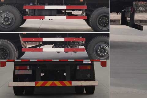 随底盘选装驾驶室及驾驶室遮阳板,选装导流罩,仅选用底盘1850+3850,1850+4000,1850+4300轴距,侧防护装置材料材质为Q235,连接方式为螺栓连接.后部防护装置材料材质为Q235,连接方式为焊接,断面尺寸(长卓?:120?0mm,离地高度为430mm,ABS型号为:3631010-C2000,DP-Q24-442-3Z-0,生产厂家分别为:东科克诺尔商用车制动系统(十堰)有限公司,深圳市德平国瀚汽车电子科技有限公司.装有卫星定位功能的行驶记录仪; |