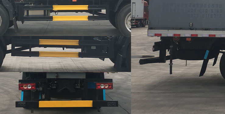 厢体顶部封闭,不可开启。厢体两侧均可选装1个或2个单侧门或双开侧门,单侧门可选择向左或向右开启,也可不装侧门。用于运输具有独立容器包装的:黑火药,压缩黑火药,非电引爆雷管,电引爆雷管,爆破炸药,点燃导火索,安全导火索,射弹,专用烟火制品,无烟火药,糊状火药,商品爆炸装药(不带雷管);类别和项别号:1.1D,1.1D,1.1B,1.1B,1.1D,1.4G,1.4S,1.2D,1.1G,1.3C,1.3C,1.2D。该车仅使用排气管前置,前轮为盘式制动器底盘,仅使用子午线轮胎;ABS系统控制器型号/生产企业:ABS-E/威伯科汽车控制系统(中国)有限公司,ABS-VI稥/广州瑞立科密汽车电子股份有限公司。该车安装具有卫星定位功能的行驶记录仪,该车装配有限速装置,限速80km/h;侧防护,后防护与车辆均采用螺栓连接,材料均为:Q235,后防护断面尺寸(mm):120?0, 离地高度480mm;车辆类型:EX/Ⅲ;仅选用3800轴距;仅选用F3.8NS6B156型发动机,油耗值为21.0L/100km,最大净功率112kw。转向轮安装轮胎爆胎应急防护装置。选装不锈钢后门框。 |