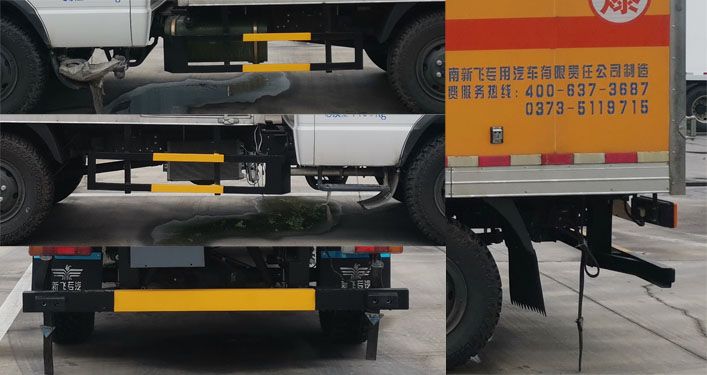 该车为危险货物运输车,厢体顶部封闭,不可开启。厢体两侧均可选装单侧门,单侧门可选择向左或向右开启,也可不装侧门;用于运输具有独立容器包装的危险物品,类项号:1.1D,1.1B,1.1G,1.2D,1.3C,1.4G,1.4S;车辆类型EX/Ⅲ;该车仅使用排气管前置,前轮为盘式制动器,装配子午线轮胎的底盘,转向轮安装轮胎爆胎应急防护装置;装有ABS,ABS型号/生产厂:APG3550500A4/浙江亚太机电股份有限公司;该车安装具有卫星定位功能的行驶记录仪,装配有限速装置,限速80km/h;侧防护、后防护与车辆均采用螺栓连接,材料均为:Q235,后防护断面尺寸(mm):100?0, 离地高度460mm;发动机SOFIM8140.43S5对应的油耗申报值10.75L/100km,发动机最大净功率为93kW;该车型可选装ETC车载装置。 |
