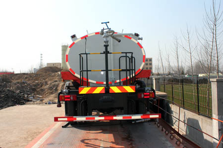 | 随底盘选装驾驶室前脸扰流罩,选装前雾灯,选装卧铺侧窗装饰板;选装后部指示标志及后部爬梯;选装管箱外观及后部洒水头;选装后部右侧不带花洒喷头;运载介质:水;密度:1000千克/立方米;罐体有效容积为9.45立方米.罐体长4870mm,最大外径2100mm;侧防护及后下部防护装置均采用Q235A材质,均采用螺栓与车架联接,后下部防护装置截面尺寸为高100mm,宽50mm,后下部防护装置离地高度为500mm;随底盘安装ABS,型号为3631010-C2000,4460046440,生产企业为东科克诺尔商用车制动系统(十堰)有限公司,威伯科汽车控制系统(中国)有限公司 |