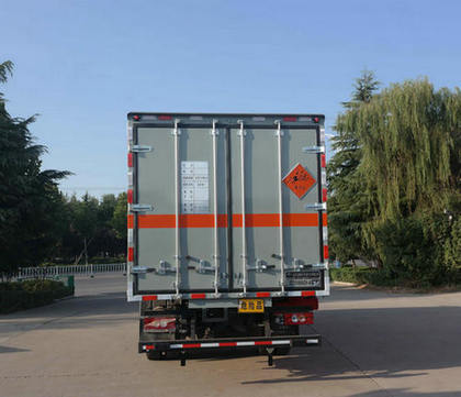 厢体顶部封闭,不可开启;车身侧面及后部粘贴橙色反光标识和爆炸品标志牌;在车体左、右、后部设置安全标示;危险货物运输车辆的车辆类型EX/Ⅲ;选装无侧门;选装多种形式的侧开门;选装瓦楞工艺厢体;选装多种形式的后门锁杆;危险货物运输车辆的车辆类型EX/Ⅲ;运送爆炸品的项号: 1.1 D,1.1 D,1.1B,1.1G,1.1G,1.1C,1.1 D,1.4G,1.1D,1.1D,1.1B,1.3C,1.2C,1.1D;侧防护装置材料为冷板B-1.5-BG/T708,与车辆连接方式为螺栓连接;后防护装置材料为510L-6.0-GB/T709,与车辆连接方式为螺栓连接;后防护断面宽120?0mm,离地高480mm;发动机F3.8NS6B156最大净功率为112kw;ABS系统型号:ABS-VI.E;生产企业:广州瑞立科密汽车电子股份有限公司.ABS系统型号:ABS-E;生产企业:威伯科汽车控制系统(中国)有限公司;安装具有卫星定位功能的行驶记录仪;仅采用前盘制动和限速装置的底盘;排气管前置;仅用子午线轮胎;油耗对应关系:17.09(F3.8NS6B156);随底盘选装排半驾驶室;选装侧单开门的新状态;该车型可选装ETC车载装置;转向轮安装爆胎应急防护装置 |