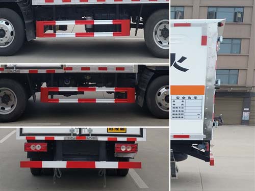 1、该车用于危险品运输,厢体顶部封闭,不可开启.危险货物运输车辆的类型为EX/II,该车主要用于运输独立容器包装的介质:黑火药、压缩黑火药、硝胺炸药,电(非电)引爆雷管,爆破用、专用烟火制品、无烟火药、糊状火药、爆破炸药、点爆索,软的、点燃导火索、射弹,带有爆炸装药、聚能装药,不带雷管、聚能炸药,不带雷管、非电引爆雷管组件,爆破用、油井用弹药筒、固态推进剂、动力装置用弹药筒、商品爆炸装药,不带雷管.运输介质类项号:1.1D,1.1D,1.4G,1.1B,1.1B,1.1G,1.1C,1.3C,1.1D,1.1D,1.4G,1.1D,1.1D,1.1B,1.1B,1.3C,1.1C,1.3C,1.1D。2、侧/后防护材料为Q235,侧防护螺栓连接,后防护焊接连接,截面尺寸100?0mm,下边缘离地高450mm。3、选装侧开门,侧门单开门、侧门双开门、侧门不开门,选装侧门型式及位置,百叶窗,选装瓦楞板。仅选用排气管前置,只装用子午线轮胎,前轮盘式制动器,安装限速装置最高车速80km/h,安装具有卫星定位功能的行驶记录仪,转向轮安装轮胎爆胎应急防护装置;ABS系统控制方式为4S/4M,ABS型号为CM4XL-4S/4M,生产厂家为广州瑞立科密汽车电子股份有限公司。发动机/油耗值(L/100km):Q23-115C60/11.5,Q23-115E60/11.4。 |
