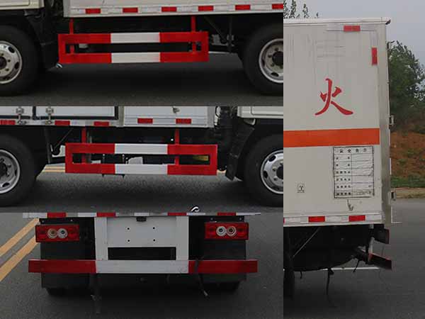 1、厢体顶部封闭,不可开启;2、选装侧门型式及位置,选装百叶窗,选装前部LOGO;3、选装侧门对应外形尺寸宽度1940mm,不带侧门对应宽度1900mm;4、排气管前置;采用前轮盘式制动器,安装辅助制动装置.只装用子午线轮胎,ABS系统控制方式为4S/4M,ABS型号为CM4XL-4S/4M,生产厂家为广州瑞立科密汽车电子股份有限公司,安装符合规定的具有卫星定位功能的行驶记录仪;5、该车用于运输具有独立容器(瓶)包装的:黑火药,压缩黑火药,电引爆雷管,爆破炸药,点燃导火索,类项号:1.1D,1.1D,1.1B,1.1D,1.4G;该车为危险货物运输车,车辆类型EX/Ⅱ型;6、防护装置材料:侧面防护及后下部防护装置材料材质:冷弯型钢/Q235,连接方式:焊接,后下部防护装置截面尺寸120mm?0mm,离地高度420mm;7、Q23-115E60发动机油耗值为11.40L/100km;8、装限速装置,限速80km/h. |