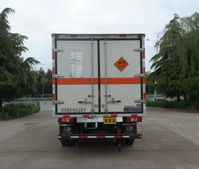 厢体顶部封闭,不可开启;厢体可选装无侧门;厢体选装多种形式的侧开门;车身侧面及后部粘贴橙色反光标识和爆炸品菱形标示,在车体后部设置安全标示;危险货物运输车辆的车辆类型EX/Ⅲ;用于运输:黑火药,压缩黑火药,硝胺炸药,电引爆雷管,爆破炸药,点燃导火索,专用烟火制品等,项目号1.1D,1.1D,1.1B,1.1D,1.4G,1.1 D,1.1G等;该车安装具有卫星定位功能的行驶记录仪;侧防护装置材料为Q235,与车辆连接方式为螺栓连接;后防护装置材料为矩形管 20-D,与车辆连接方式为螺栓连接;后防护断面宽100?0mm,离地高420mm;ABS系统型号:ECU:4460043200;电磁阀:4721950180,厂家为威伯科汽车控制系统(中国)有限公司;仅用子午线轮胎,仅用底盘限速装置及前盘制动;仅选用底盘的前置排气管结构;随底盘选装前围和相关附件;油耗对应关系:ISF3.8s5141(17.8),ISF2.8s5R117(18.1),ISF2.8s5129T(18.1),4J28TC3(17.46);随底盘选装侧转向灯;随底盘选装新前围;随底盘选装驾驶室侧电瓶位置,副驾驶室侧油箱位置. |