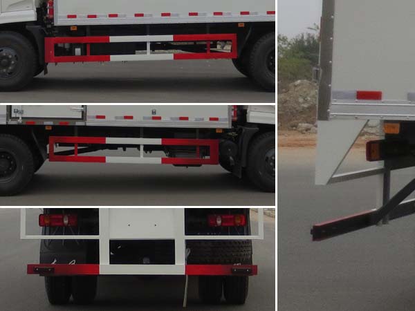 随底盘选装驾驶室;厢体顶部封闭,不可开启;运输介质:黑火药,压缩黑火药,电引爆雷管,爆破炸药,点燃导火索;运输介质类别和项号:1.1D,1.1D,1.1B,1.1D,1.4G,1.1G;运送危险货物车辆的类型:EX/Ⅲ型车辆;厢体选装瓦楞板结构,厢体侧面选装开门型式及位置或不带侧开门,选装百叶窗;仅采用前轮盘式制动器,前置排气管,子午线轮胎,限速装置的底盘,限速80km/h;后轴采用空气悬架;该车安装具有卫星定位功能的行驶记录仪;ABS型号:3631010-C2000,4460046440;生产厂家:东科克诺尔商用车制动系统(十堰)有限公司,威伯科汽车控制系统(中国)有限公司;侧面防护及后下部防护装置材料材质:Q235,连接方式:焊接加螺栓连接;后下部防护装置断面尺寸(宽赘?:50?20(mm),离地高度:495mm. 该车后轴为采用空气悬架. |