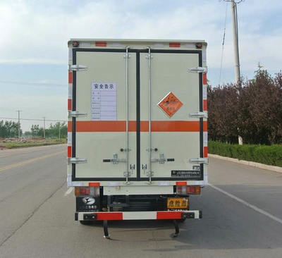 厢体顶部封闭,不可开启;厢体可选装无侧门;选装导流罩;厢体选装多种形式的侧开门;选装平铁、瓦铁风格厢体,该状态整备质量为2650kg;随底盘选装新前围、号牌板支架和后尾组合灯;车身侧面及后部粘贴橙色反光标识和爆炸品菱形标示,危险货物运输车辆的车辆类型:EX/Ⅲ;在车体后部设置安全标示;运输介质:专用烟火制品,烟花爆竹.运输介质类别和项别号:1.1G,1.2G,1.3G,1.4G;该车安装具有卫星定位功能的行驶记录仪;防护装置材料为Q235,与车辆连接方式为螺栓连接;后防护断面宽100?0mm,离地高400mm;ABS系统型号:APG3550500A,ABS系统生产厂家:浙江亚太机电股份有限公司;发动机最大净功率:83kw;仅用子午线轮胎,仅用底盘限速装置及前盘制动;仅选用底盘的前置排气管结构;油耗对应关系:JX493ZLQ5(11.18),JX493ZLQ5A(11.20);选装前开侧门 |