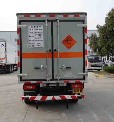 厢体顶部密封,不可开启.随底盘厂家选装驾驶室前围。厢体两侧选装不同形式侧开门及开门位置或不带侧门.选装不同形式后门拉杆,选装厢体外蒙皮.选用于运输具有独立容器(瓶)包装的:黑火药,压缩黑火药,电(非电)引爆雷管,爆破炸药,导爆索,点燃导火索,射弹 装有爆炸装药.运送爆炸品的项号: 1.1D, 1.1D,1.1B ,1.1B, 1.1D, 1.1D, 1.4G, 1.1D.危险货物运输车辆的车辆类型为EX/Ⅲ型.侧防护与车辆均采用螺栓连接,后防护与车辆均采用螺栓+焊接连接,材料均为:Q235,后防护断面尺寸(mm):100?0, 离地高度:400 mm.该车安装ABS,限速装置,盘式制动器,排气管前置,带卫星定位功能的行驶记录仪。ABS系统型号:APG3550500A,ABS系统生产厂家:浙江亚太机电股份有限公司.仅采用JX493ZLQ5发动机油耗申报值为11.9L/100km. |