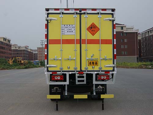 厢体顶部封闭,不可开启,厢体两侧均可选装1个或2个单侧门,边门和后门可选单门杆或双门杆。此车选装加隔断,用于运输具有独立容器(瓶)包装的: 黑火药、压缩黑火药、电(非电)引爆雷管,爆破用、专用烟火制品、无烟火药、糊状火药、爆破炸药、导爆索,软的、点燃导火索、射弹,带有爆炸装药、聚能装药,不带雷管、非电引爆雷管组件,爆破用、油井用弹药筒、固态推进剂、动力装置用弹药筒、商品爆炸装药,不带雷管.运送爆炸品的项号: 1.1 D,1.1 D,1.1B,1.1G ,1.1C,1.1C,1.1 D,1.1 D,1.4G,1.1D,1.1 D,1.4B,1.3C,1.1C,1.3C,1.1D;等;侧面,后面防护装置的横杆材料为Q235,侧、后防护为螺栓连接,后防护断面尺寸100?0mm,后防护离地高度为430mm; 仅选装安装有ABS的底盘,ABS型号:44600XXXX0;ABS生产企业:威伯科汽车控制系统(中国)有限公司; 仅选装安装有盘式制动器、消声器前置的底盘。该车装备有限速装置,限速80km/h。该车仅使用子午线轮胎。随底盘选装带卧铺,选装前围及前部灯具。该车安装具有卫星定位功能的行驶记录仪。ISF3.8s5154发动机最大净功率为112KW,对应油耗值25.51 |