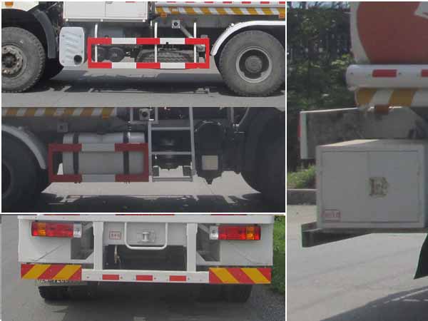 | 罐体外形尺寸:罐体长4.4米,长轴2.45米,短轴1.6米.罐体有效容积为12立方米.防护材质均为Q235,均为螺栓连接.后防护下横向构件截面尺寸为:100x50毫米,下平面距地尺寸500毫米.随底盘选装驾驶室.ABS型号/厂家:CM4XL/长春科密汽车制动有限公司.罐体上图案根据用户要求确定.选装罐体前部箱子. |