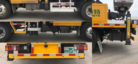 该车采用3360mm轴距底盘;随底盘选装一种仅变化前面板、前格栅、前组合灯具的驾驶室;选装后视镜款式;选装前部标牌"4KENGING/NJR/NHR/NKR/100P".专用装置:臂架、转台、工作平台,用于举升运送专业人员进行高空作业和市政抢修;侧防护装置材料铝合金5083,连接方式:螺栓连接;后防护装置材料Q235,截面尺寸100mmx48mm,离地高度425mm,连接方式:与纵梁后部焊接;该底盘选装制动系统:装液压制动系统时,ABS及其控制器型号/生产企业对应关系为:APG3550500A/浙江亚太机电股份有限公司,CM4YL/广州瑞立科密汽车电子股份有限公司;装气压制动系统时,ABS及其控制器型号/生产企业对应关系为:CM4XL-4S/4M/广州瑞立科密汽车电子股份有限公司.选装工作平台样式. |