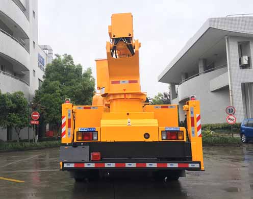 1、可不安装上车小转臂。2、静音装置为选装件,不选装静音装置时总质量9145kg,整备质量8950kg;选装静音装置时总质量为9480kg,整备质量9285kg。3、侧面防护装置采用Q235A横杆构成,与副大梁(底架)螺栓连接。4、后下防护装置采用Q235A横杆构成,与副大梁(底架)螺栓连接,断面尺寸120mm?0mm,离地高度400mm。5、随底盘选装发动机,4HK1-TCG61发动机净功率为138kw。4HK1-TCG60发动机净功率为150kw。6、随底盘安装ABS,ABS及控制器型号为:APG3550500H1,生产厂家为:浙江亚太机电股份有限公司。7.该车型装备有支腿,转台,臂架,工作平台等部件的高空作业装置,可将作业人员与工具送到指定高度位置进行作业。8.选装车尾导向灯;随底盘选装后处理保护支架、驾驶室前脸栅格样式。9、选装绝缘安全提醒装置。