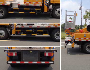 该车由液压机构,臂架,转台,工作平台,支腿等构成,通过臂架伸缩,转台回转,将工作平台举升至作业位置;防护材料:Q235A碳钢,连接方式:左右侧面及后下部防护均采用焊接连接,后部防护断面尺寸(mm):100?0,后部防护离地高度(mm):430, ABS系统型号:APG3550500A,ABS系统生产厂家:浙江亚太机电股份有限公司,随底盘扩展参数以及驾驶室,选装臂架样式。 |