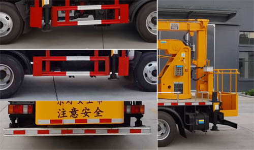 1.该车用途为抢修电力、通讯、路灯等高空作业,主要装置为作业臂.2.该车后伸350mm,吊钩为选装件,选装吊篮;3.侧面防护及后下部防护装置材料: Q235B碳钢,侧、后防护连接方式:焊接连接,后下部防护断面尺寸(宽赘?:50?00(mm),离地高度:370mm;4.ABS型号:APG3550500A,厂家:浙江亚太机电股份有限公司;5.随底盘选装驾驶室. |