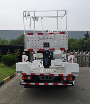 后伸370mm.侧防护材料Q235A,非对称,连接方式为螺栓连接;后防护材料Q345,截面宽80mm,截面高100mm,离地高480mm,连接方式为焊接连接.ABS系统型号:APG3550500A,ABS系统生产厂家:浙江亚太机电股份有限公司.专用装置为高空作业装置,主要用于市政、园林、路灯、电力、交通等需要高空作业的领域.黑色贴膜可选择取消.选装托臂支架.随底盘选装驾驶室形式.选装外观标识.选装双电瓶.选装油箱样式.选装后部液压油箱样式.选装后部阀罩. |