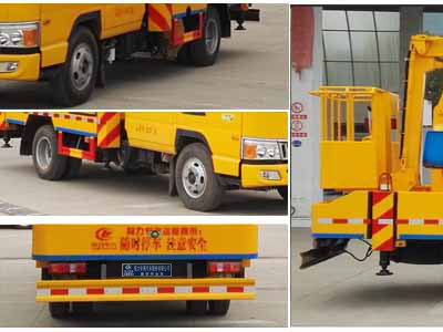 该车吊臂前伸为830mm,作业高度为14米和16米。上装选装二节工作臂时,作业高度为12米。防护材料:Q235A碳钢,连接方式:左右侧面及后下部防护均采用焊接连接,后下部防护断面尺寸(mm):180?0,后下部防护离地高度(mm):420。ABS厂家及型号: 广州科密汽车电子控制技术股份有限公司CM4XL-4S/4M。该车可选装带电控操作箱。专用装置:吊臂,主要用于高空作业,进行维修、安装、清洗、摄影、造船、化工、电力、剪枝、更换路灯及其他工程抢修作业。选装站臂、电控操作装置。 |