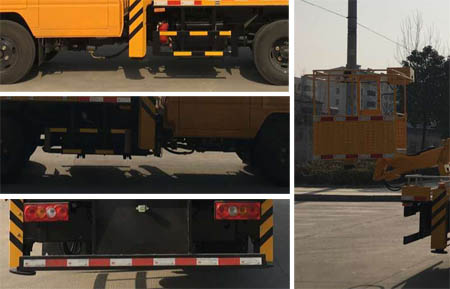 该车用途为抢修电力、通讯、路灯等高空作业。主要装置为升降平台,作业臂。随底盘选装驾驶室。车辆后伸1300mm。侧、后防护材料采用Q235B,与车架焊接连接;后部防护断面尺寸50?00(mm),离地高度390mm。ABS系统型号:APG3550500A,ABS系统生产厂家:浙江亚太机电股份有限公司。选装吊篮样式。 |
