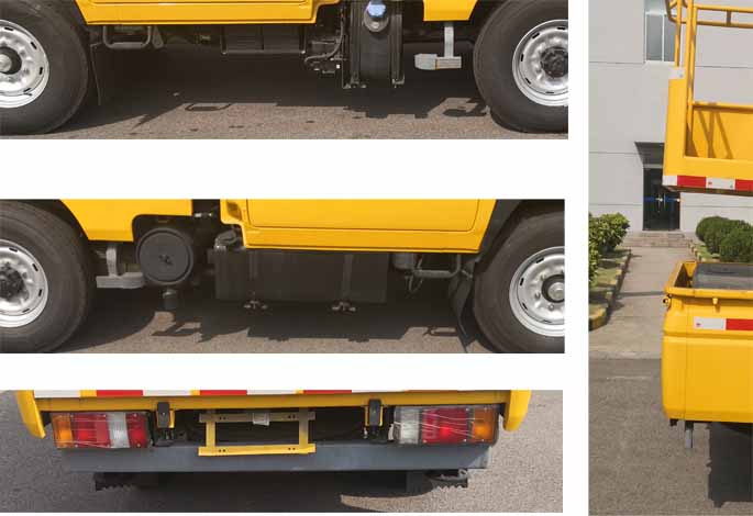 后伸:120mm;该车装ABS,ABS及其控制器型号/生产企业对应关系为::APG3550500A/浙江亚太机电股份有限公司,CM4YL/广州瑞立科密汽车电子股份有限公司;选装一种仅变化前面板、前格栅、前组合灯具的驾驶室;选装后视镜款式;5、选装前部标牌“4K ENGING/NJR/NHR/NKR/100P”选装后部标牌“100P/600P”.侧防护离地高度290mm材料Q345A,连接方式螺栓连接.后防护材料Q345A,连接方式为螺栓连接,离地高度300mm,截面高100mm,截面宽60mm.该车专用装置为高空作业装置,主要用在市政、园林、路灯、电力、交通等高空作业领域.随底盘选装驾驶室形式. |
