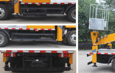 该车用途为抢修电力、通讯、路灯等高空作业.主要装置为升降平台,作业臂.侧、后防护材料采用Q235B,与车架焊接连接.后防护截面尺寸(宽赘? (mm):50?00,离地高440mm。ABS系统型号:APG3550500A,ABS系统生产厂家:浙江亚太机电股份有限公司.选装作业臂样式.选装外观样式. |
