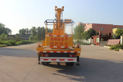 该车用途为抢修电力、通讯、路灯等高空作业.主要装置为升降平台,作业臂.随底盘选装驾驶室.当整车长度为7650mm时,该车前伸850mm,车辆后伸470mm;当整车长度为6760mm时,前伸为430mm.吊钩为选装件.侧,后防护材料Q235B,与车架焊接连接.后防护截面尺寸(宽赘? (mm):50?00,离地高400mm.ABS系统型号:APG3550500A,ABS系统生产厂家:浙江亚太机电股份有限公司.选装外观样式,作业臂样式,吊篮样式. |