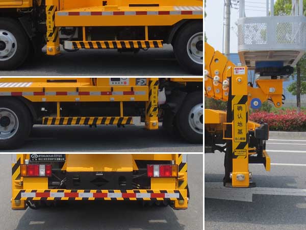后伸:350mm,290mm;随底盘选装驾驶室;选装后部工作斗样式;侧面防护及后下部防护装置材料材质:Q235,连接方式:焊接加螺栓连接;后下部防护装置断面尺寸(宽赘?:30?05(mm),离地高度:390mm;ABS系统型号:APG3550500A,ABS系统生产厂家:浙江亚太机电股份有限公司;主要专用装置为伸缩臂,用于抢修电力、通讯、路灯等高空作业. |