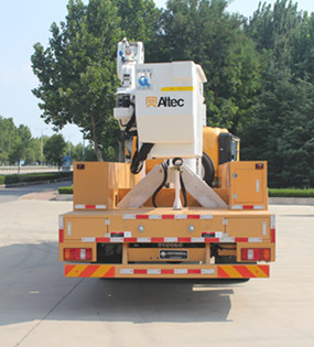 | 侧防护材质为Q235钢板,与车架连接方式为螺栓连接;后防护材质为Q345钢板,与车架连接方式为螺栓连接,截面尺寸为150mm?0mm,下缘离地高度490mm。ABS系统型号为XH-KQ4S4M-E01,生产企业为广州市西合汽车电子装备有限公司。该车装有绝缘臂、绝缘工作斗、支腿、工具箱等总成。通过全液压操纵,实现工作台举升、旋转等功能。适用于高压线路带电检修等高空作业工作。选装支腿型式及工具箱结构,选装牌照灯位置。选装上装立柱,对应整车高度为3790mm. |