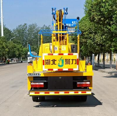 随底盘选装驾驶室;选装臂架结构;仅采用3308mm轴距;该车前伸890mm,后伸300mm;侧防护材料Q235B,螺栓连接;后防护材料Q235B,焊接连接,后防护截面高度尺寸200mm,截面宽度尺寸50mm,下边缘离地高度380mm;ABS型号/厂家:ABS/ASR-12V-4S/4M/襄阳东风隆诚机械有限责任公司;该车主要用于抢修电力,通讯,路灯等高空作业,专用装置为升降平台和作业臂. |