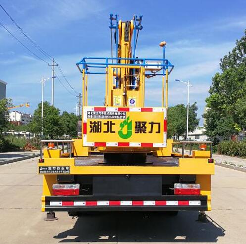 随底盘选装驾驶室;选装臂架前部不装吊钩结构;前伸/前悬/后伸对应关系(mm):870/1130/200,850/1150/200;仅采用3800mm轴距;侧防护材料Q235B,螺栓连接;后防护材料Q235B,焊接连接,后下部防护装置断面尺寸(宽赘?:50?00(mm),离地高度:500mm;ABS型号:ABS/ASR-24V-4S/4M,厂家:襄阳东风隆诚机械有限责任公司;该车用途为抢修电力,通讯,路灯等高空作业,主要装置为升降平台,作业臂. |