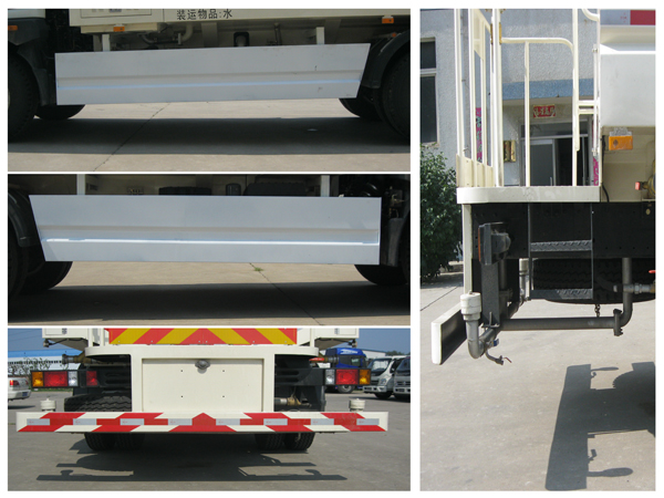 | 随底盘选装驾驶室前围和前大灯;罐体运输介质:水,密度1000千克/立方米,总容积10.12立方米,有效容积9.0立方米,罐体外形尺寸(长壮ぶ嶙短轴)(mm):4000?300?400; 侧面及后下部防护装置材料材质为Q235A,连接方式为焊接;后下部防护装置的截面尺寸为(宽赘?:60mm?50mm,离地高度为:525mm;ABS型号为CM4XL-4S/4K(4S/4M),生产厂家为广州科密汽车电子控制技术股份有限公司.发动机ISF3.8s5168,YC6J180-52对应的净功率分别为122kw,128kw. |