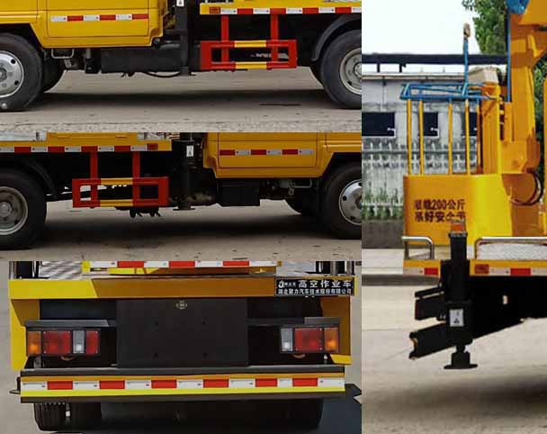 随底盘选装驾驶室,选装臂架结构;选装臂架不带吊钩结构;前伸800mm,后伸300mm;侧防护材料Q235B,螺栓连接,后防护材料Q235B,焊接连接;后下部防护装置断面尺寸(宽赘?:50?00(mm),离地高度:400mm;装液压制动系统时,ABS及其控制器型号/生产企业对应关系为:APG3550500A/浙江亚太机电股份有限公司,CM4YL/广州瑞立科密汽车电子股份有限公司;装气压制动系统时,ABS及其控制器型号/生产企业对应关系为:CM4XL-4S/4M/广州瑞立科密汽车电子股份有限公司;该车主要用于抢修电力,通讯,路灯等高空作业,专用装置为升降平台和作业臂. |