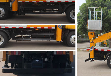 该车用途为抢修电力、通讯、路灯等高空作业.主要装置为升降平台,作业臂.随底盘选装一种仅变化前面板、前格栅、前组合灯具的驾驶室、选装后视镜款式、选装前部标牌“4K ENGING/NJR/NHR/NKR/100P”.侧、后防护材料采用Q235B,与车架焊接连接.后防护截面尺寸(宽赘? (mm):50?00,离地高440mm.选装制动系统:装液压制动系统时,ABS及其控制器型号/生产企业对应关系为:APG3550500A/浙江亚太机电股份有限公司,CM4YL/广州瑞立科密汽车电子股份有限公司;装气压制动系统时,ABS及其控制器型号/生产企业对应关系为:CM4XL-4S/4M/广州瑞立科密汽车电子股份有限公司.选装作业臂及外观样式. |