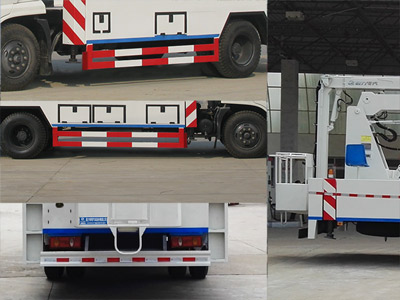 1、随底盘选装驾驶室。2、该车后伸为700mm。整车前伸/轴距对应关系为(mm):620/4500,420/4700。 3、防护材料:侧防护采用Q235碳钢,后防护采用Q235B碳钢。连接方式:左右侧面及后下部防护均采用焊接连接,后部防护断面尺寸(mm):180?0,后部防护离地高度(mm):480。4、ABS型号:3631010-C2000,生产厂家:东科克诺尔商用车制动系统(十堰)有限公司。5、该车可选装带电控操作箱。6、专用装置:吊臂,主要用于高空作业,进行维修、安装、清洗、摄影、造船、化工、电力、剪枝、更换路灯及其他工程抢修作业。 |