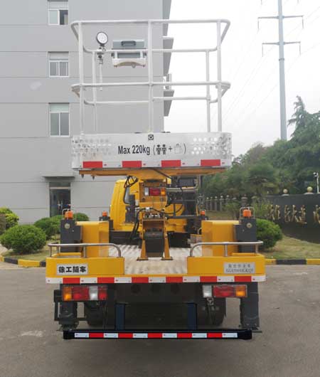 | 后伸:350mm,后侧防护装置为金属护栏,材质Q235A,后防护连接方式为焊接连接,后防护截面高100mm,截面宽60mm,离地高度414mm,侧防护连接方式为螺栓连接.发动机净功率为94kW;该底盘装ABS,ABS及其控制器型号为:APG3550500A4,生产厂家为:浙江亚太机电股份有限公司.专用装置为高空作业装置,主要用于电力、市政、园林、路灯、交通等需高空作业的领域. |