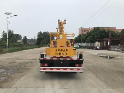 | 随底盘选装驾驶室,该车前伸200mm,吊钩为选装件.侧、后防护材料采用Q235B,与车架焊接连接.后防护截面尺寸(宽赘? (mm):50?00,离地高400mm.ABS系统型号:APG3550500A,ABS系统生产厂家:浙江亚太机电股份有限公司.选装外观样式,作业臂样式,吊篮样式. |
