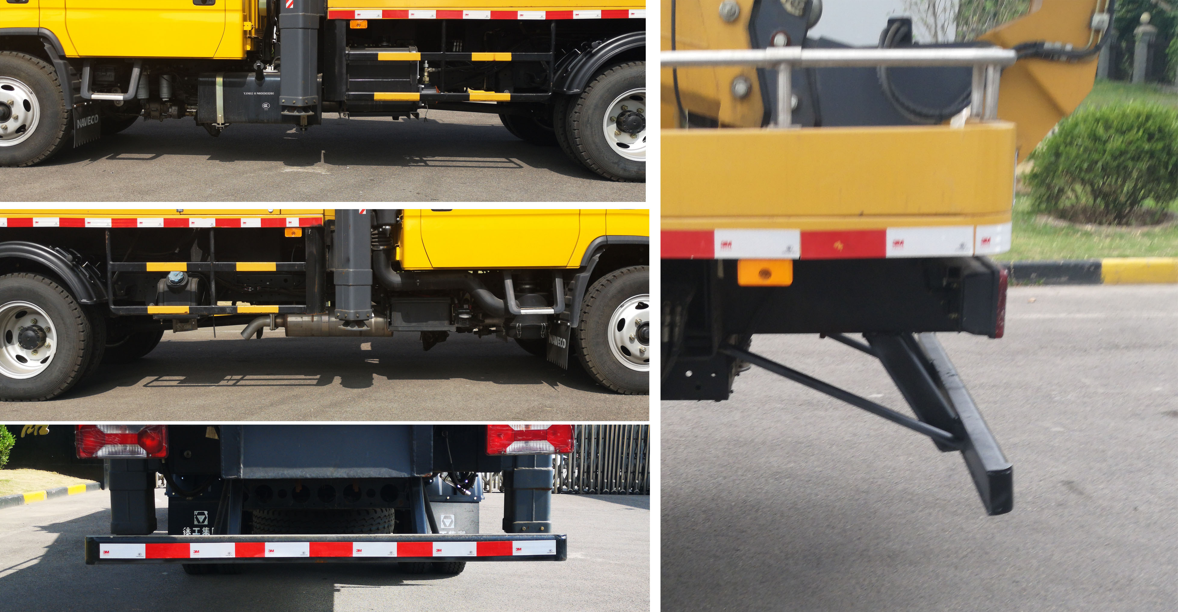 | 该车后伸312mm.该车侧、后防护材料均为Q235A;侧防护连接方式为螺栓连接;后防护截面高100mm,截面宽60mm,离地高度450mm,连接方式为焊接连接.ABS型号:APG3550500A6,VIE ABS-II,ABS生产企业:浙江亚太机电股份有限公司,浙江万安科技股份有限公司.该车专用装置为高空作业装置,主要用在市政、园林、路灯、电力、交通等高空作业领域. |