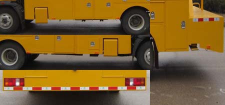 | 该车仅采用3800轴距底盘,后伸450mm.专用装置:臂架、绝缘臂、工作平台,用于举升运送专业人员进行高空带电作业和市政抢修.侧防护、后防护都为裙板式结构,材料Q235,后防护离地高度500mm.ABS系统型号为XH-KQ4S4M-E01,生产企业为广州市西合汽车电子装备有限公司.选装A型支腿和H型支腿. |